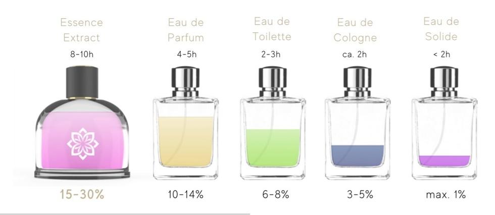 Darüber hinaus beträgt der Prozentsatz des Duftstoffs (Essenz) 30%, wodurch das Produkt "Extrait de Parfum" klassifiziert wird und im Vergleich zu den namhaften Düften prozentual mehr Duftstoffe enthält.